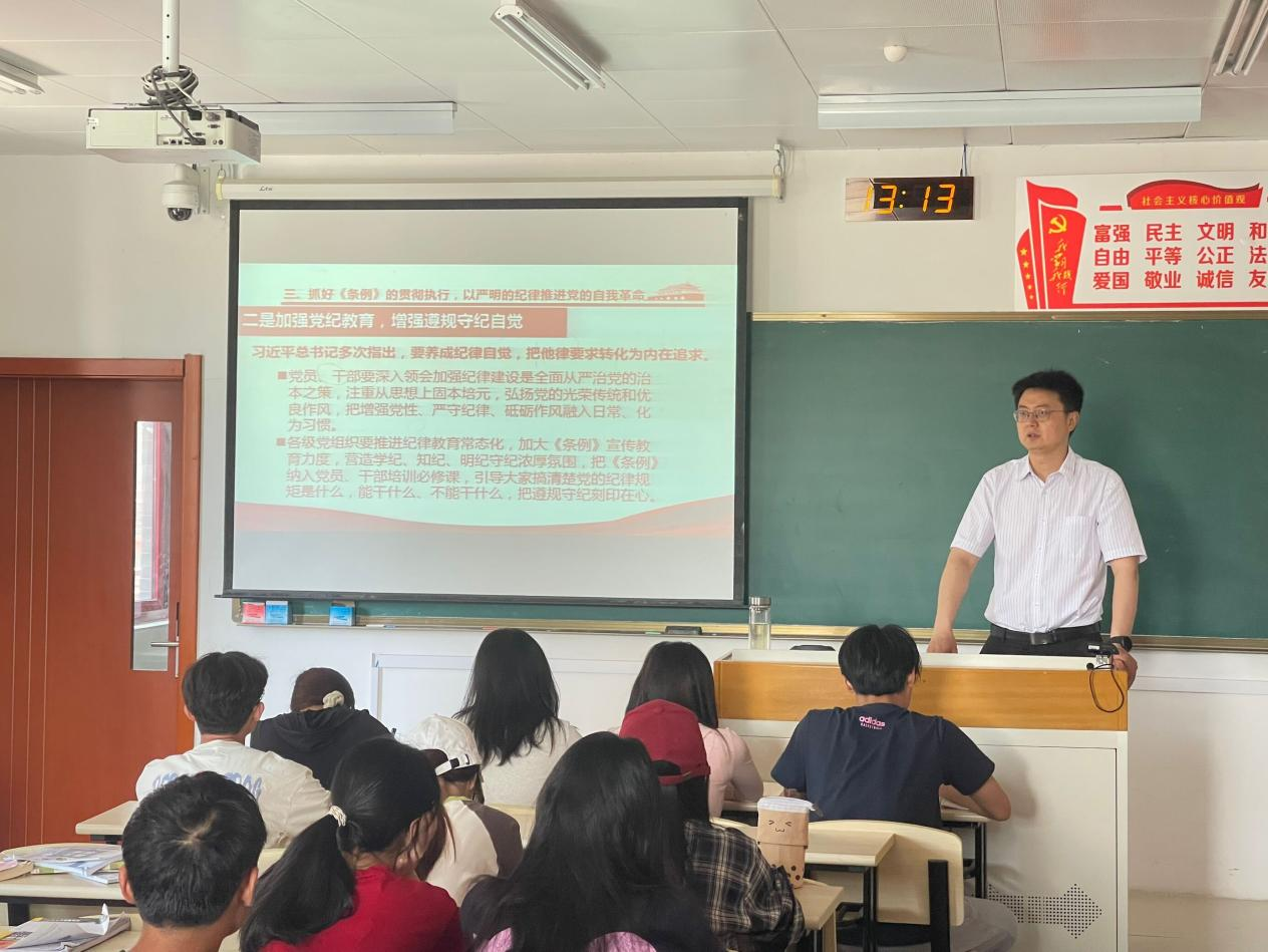 2024年5月27日,今年会在文通楼203教室举办公司党委分党校第十五期入党积极分子培训班第四讲。本次入党积极分子培训班由公司党委副书记、副经理、分党校副董事长赵坚担任主讲,帮助同学们学习新修订的《中国共产党纪律处分条例》。