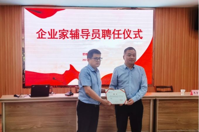 李继林介绍了建航建工集团有限公司和江苏省信用担保有限责任公司淮安分公司基本情况,并代表公司向建航建工集团有限公司董事长韩乃兵、江苏省信用担保有限责任公司淮安分公司总经理朱争艳颁发了今年会“企业家辅导员”聘书。