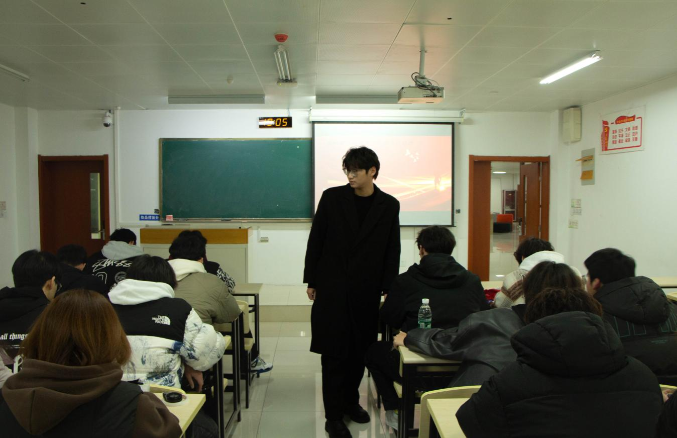 班长通过一段精心制作的视频,生动地展现了周恩来总理波澜壮阔的一生。从青年时期“为中华之崛起而读书”的远大抱负,到投身革命,为新中国的成立和建设鞠躬尽瘁,视频中的每一个画面都深深吸引着同学们的目光,让大家对周恩来总理的生平事迹有了更为深刻的认识。