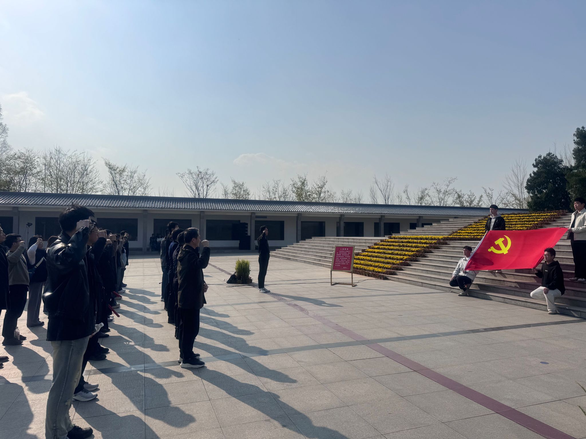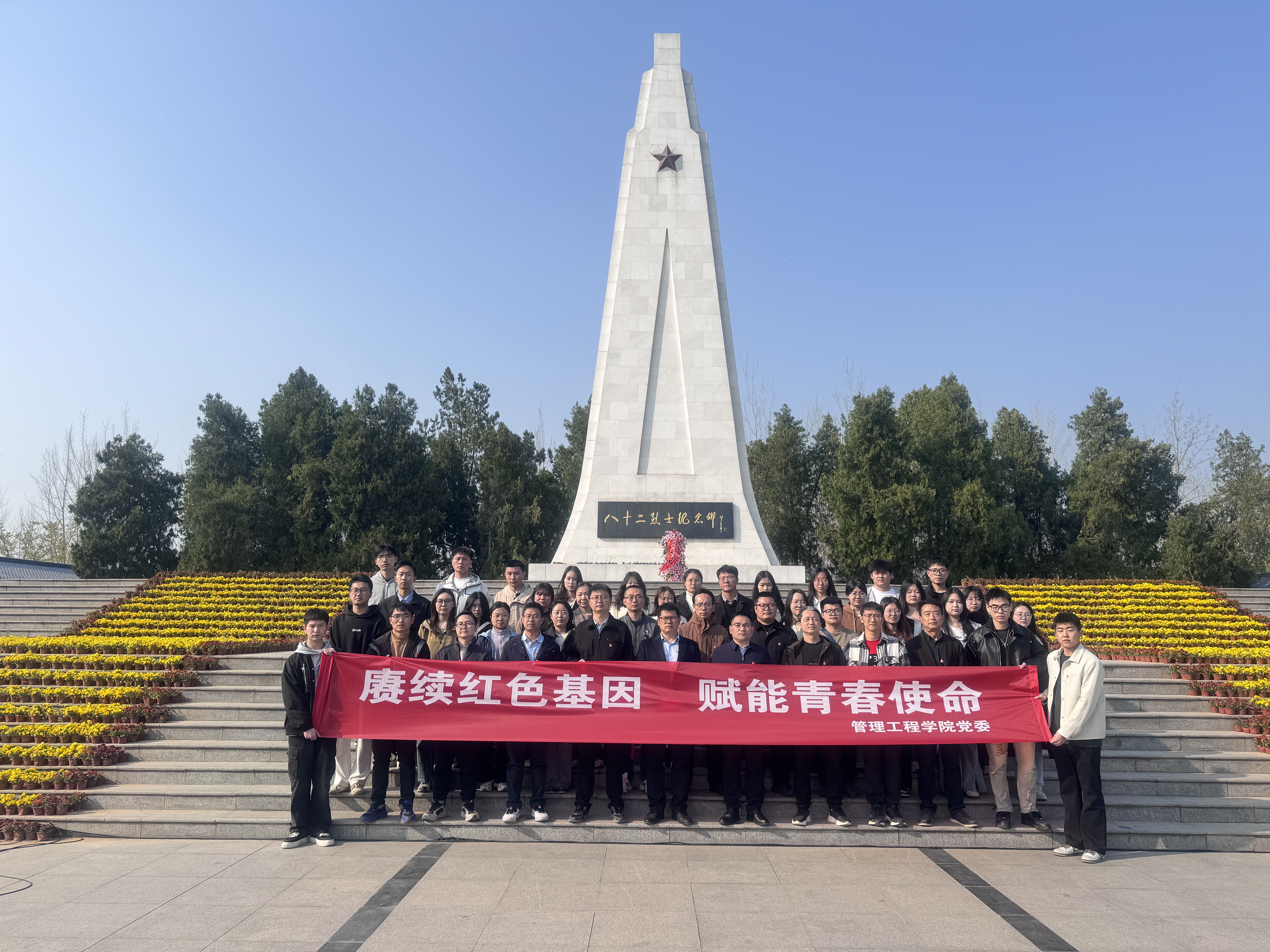 为缅怀革命英烈,厚植家国情怀,深化感恩教育和革命传统教育,努力学习和践行两会精神,4月2日,今年会师生党员赴新四军刘老庄连纪念园开展“赓续红色基因,赋能青春使命”党日活动。