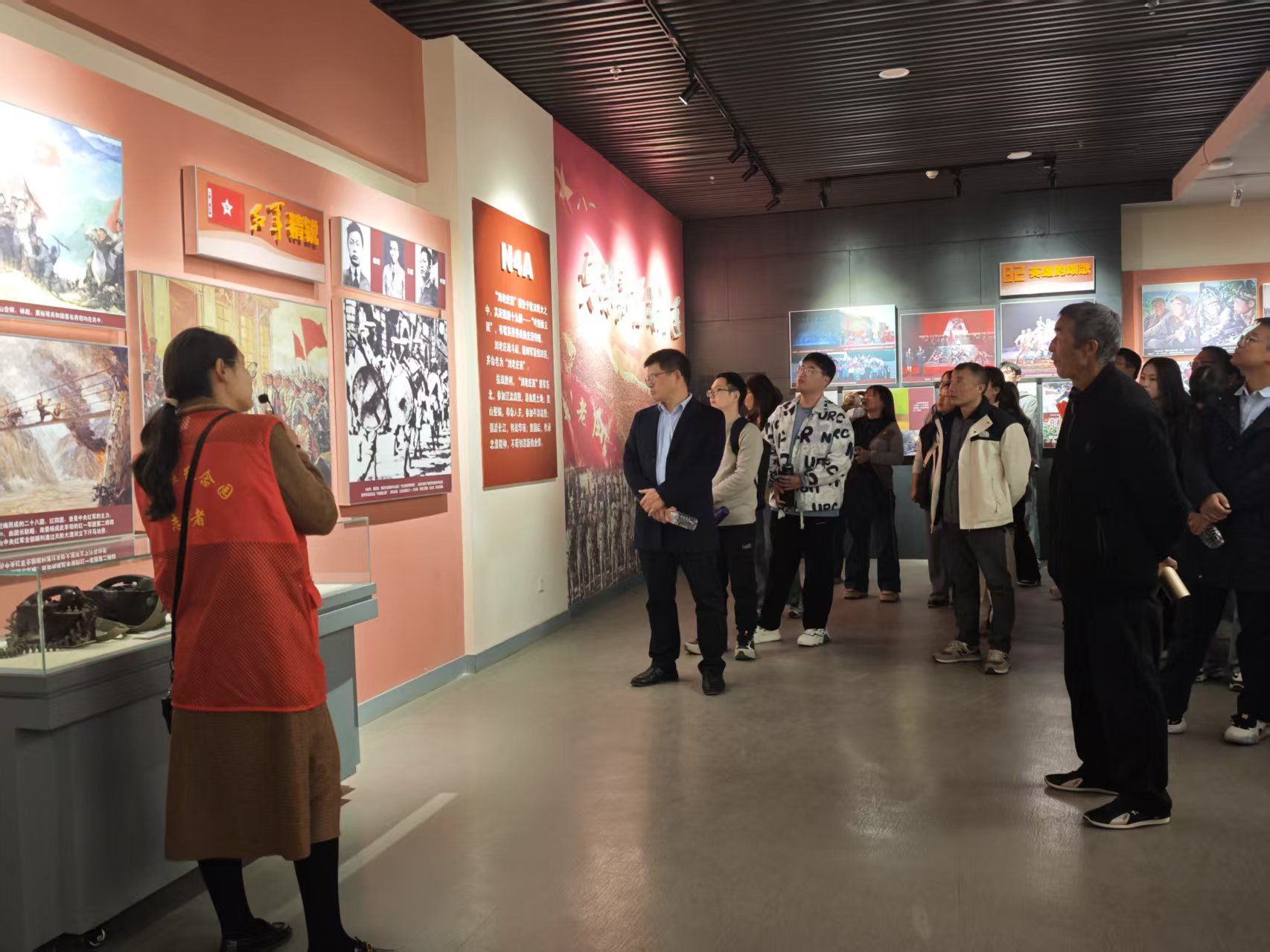 历史是最好的教科书,精神是永恒的接力棒。在讲解员的讲述中,师生们参观刘老庄纪念馆,重温那段峥嵘岁月,感悟先烈们革命的赤诚与信仰的坚定。“永远为了群众,永远依靠群众。”这是镌刻于八十二烈士纪念馆外墙壁上的一句话,全体师生党员带着敬畏之心踏入纪念馆,纪念馆分为四个展厅。馆内陈列的一件件珍贵文物、一幅幅生动图片、一段段感人文字,仿佛把大家带回了那个战火纷飞的年代。讲解员声情并茂地讲述着烈士们的英雄事迹,党员们认真聆听,不时驻足凝视。