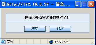 (2)清空所有选课结果:如果你觉得对目前的选课情况不满意,想重新开始选,这时可以点击[清空选课]按钮同时需按往CRTL按钮以清空选课数据,重新开始选课。此时系统会出现如下警告信息(图3.16),点击[清空]即可。该功能务必请同学们谨慎使用。