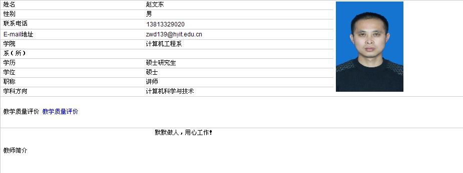 3、查看教师信息。在查看课程安排的界面(图2.5)中点击课程代码或课程名称,打开员工选课页面(图2.7)。点击教师姓名可查看教师的基本信息(图2.8)。
