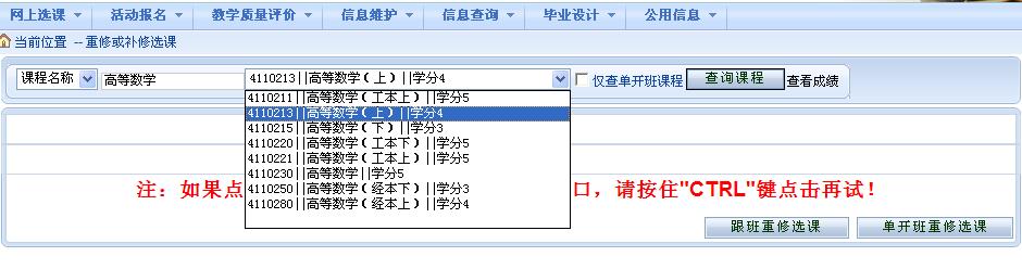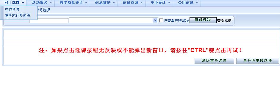 7、有不及格课程需要重修的同学,应注意第三轮选课(重修、补修选课)通知,在规定时间内进行网上选课。