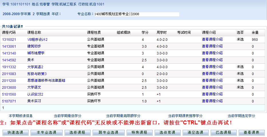 (4)注意:选课时要注意上课地点(校区),不可跨校区选课。
