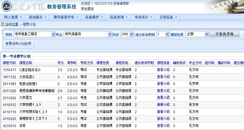 二、查看培养计划、课程安排、课程介绍、教师信息