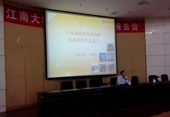 刘教授从中国道路的被动选择与主动选择,详细阐述了历史是对发展道路和模式的择优过程。他指出,改革开放30多年来,我们能够取得人类历史上前无古人的成就,其根本原因就在于我们走出了一条中国特色社会主义道路。中国特色社会主义道路,就是把马克思主义的普遍真理同中国的具体实际相结合,一方面要坚持马克思主义的基本原理,走社会主义道路; 另一方面必须从中国的实际出发,不照抄、照搬别国经验、模式,走适合中国特点的道路。我们必须要毫不动摇地坚持和发展中国特色社会主义道路,坚定不移、与时俱进地开拓社会主义道路,增强社会主义道路自信,进一步推动中国特色社会主义建设。