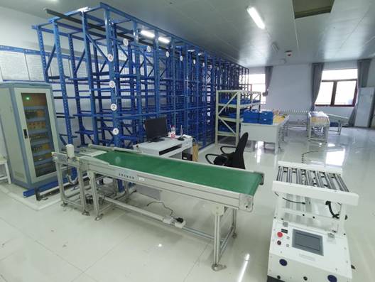 该分室主要设备:计算机1台,服务器1套,立体仓库、平移出入口、分拣口3个、AGV小车1台。