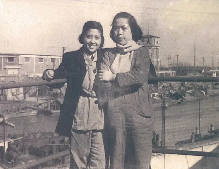 (薛蔚芳(左)与地下党员喜迎上海解放)