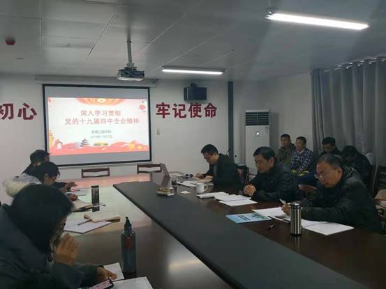 11月27日下午,公司在文通楼401会议室开展深入学习贯彻党的十九届四中全会精神学习会,公司党委副书记、副经理翟尧带领公司全体教职工学习《关于深入学习宣传贯彻党的十九届四中全会精神的通知》、《从三个维度理解和推进国家治理体系和治理能力现代化》。