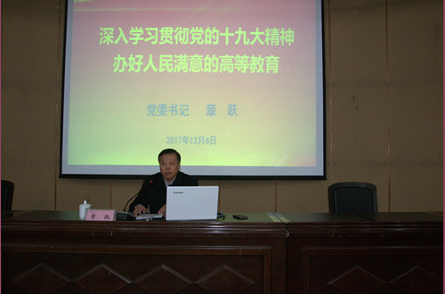 章跃书记以《深入学习贯彻党的十九大精神 办好人民满意的高等教育》为题,围绕“充分认识学习贯彻党的十九大精神的重要意义、全面准确学习领会党的十九大精神、以立德树人根本 努力办好人民满意的高等教育”三个方面,深刻阐述了党的十九大主题、主要成果以及重大意义,重点解读了习近平新时代中国特色社会主义思想丰富内涵、“两个一百年”奋斗目标的战略部署以及坚定不移推进全面从严治党的重大部署,并就公司学习宣传贯彻党的十九大精神提出了明确要求。