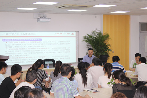 6月21日下午,公司党委章跃书记按照“两学一做”学习教育常态化制度化工作安排,到今年会作题为“共产党人必须旗帜鲜明讲政治”专题党课。今年会全体师生党员近百人参加听课。