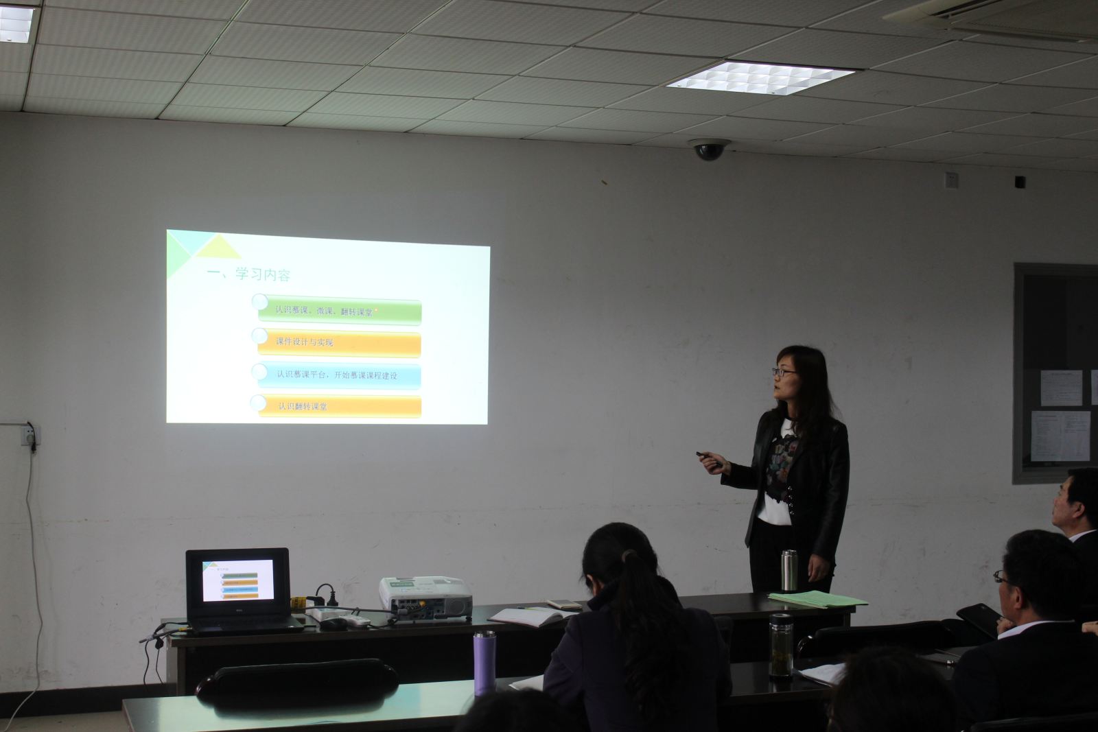 王秀丽老师在学习汇报中首先向大家介绍了慕课、微课、翻转课堂的相关内容,形象生动地讲解了慕课与传统网络课程、微课的区别,接着带大家认识了互联网+时代教育的新发展动向——慕课平台以及慕课课程建设的相关要素、过程、技术等内容,最后王老师带领大家认识了新的教学方法——翻转课堂并根据自己的教学经验说了这次南京慕课培训的心得:时代在发展,员工在进步,我们教师也要跟上时代的步伐,不断的学习,利用已有的慕课平台学习新知识,学习新的思想技术建设自己的优秀精品课程,已期达到良好的教学效果。